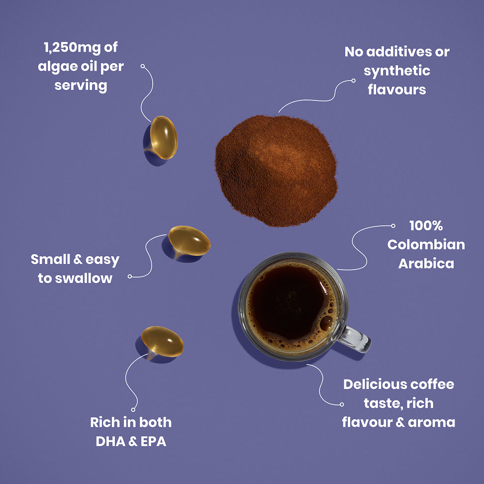This combo contains our Mushroom Coffee (made with Lion's Mane) and our High Strength Omega-3. Designed to work in harmony, they both boost focus and cognition whilst providing a sustained lift in energy levels.
