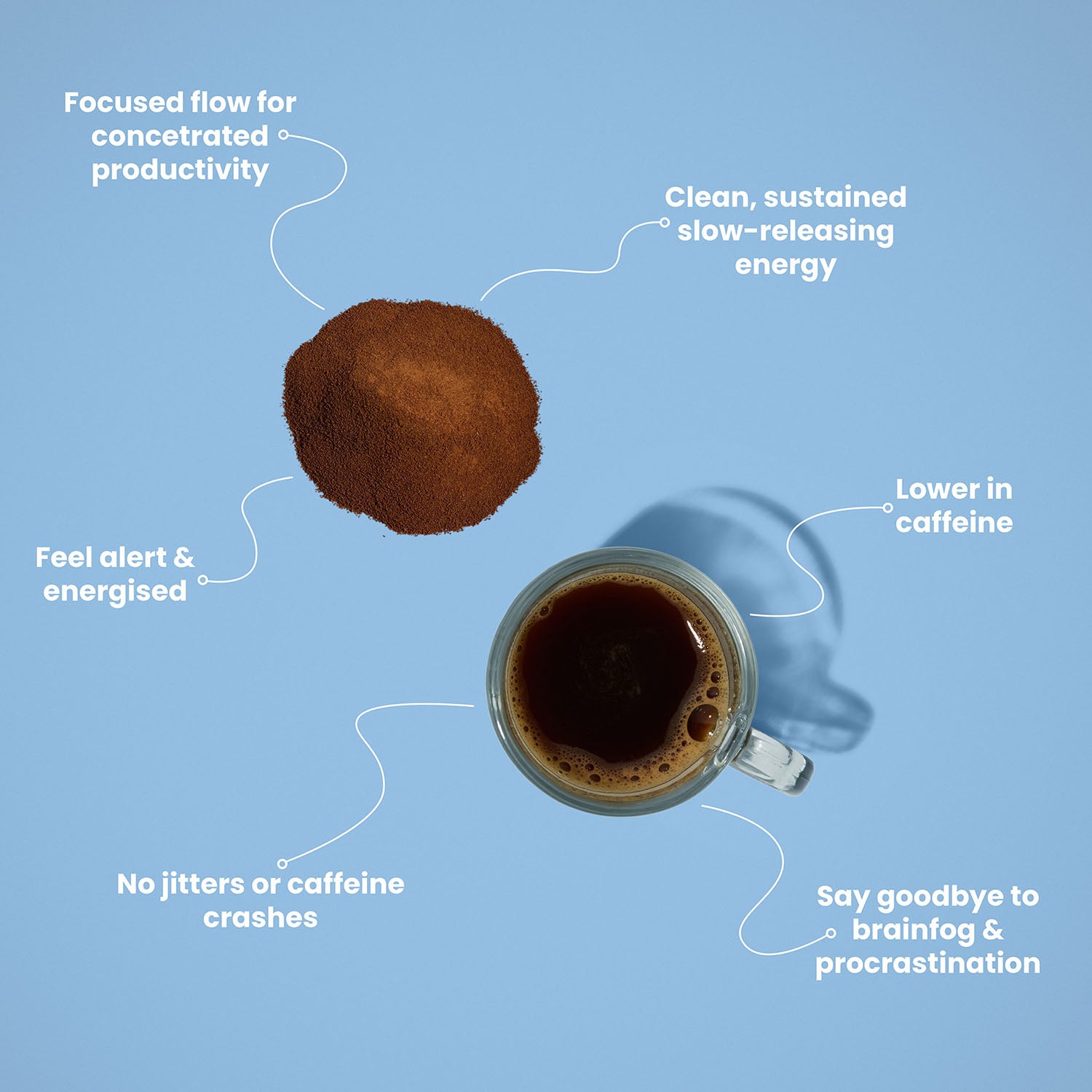 I have swapped from coffee pods to the mushroom coffee and I feel so alert and awake! No more crash mid morning! Highly recommend!